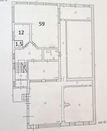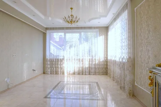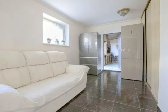 1 этаж: большая кухня с выходом на летнюю кухню и веранду, столовая, большая спальня со своим санузлом, гардеробная комната и котельная, большая квартира для персонала с собственной кухней, санузлом и отдельным входом, большая кладовая комната, помещение свободного назначения 70 кв/м.