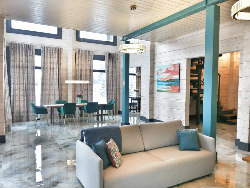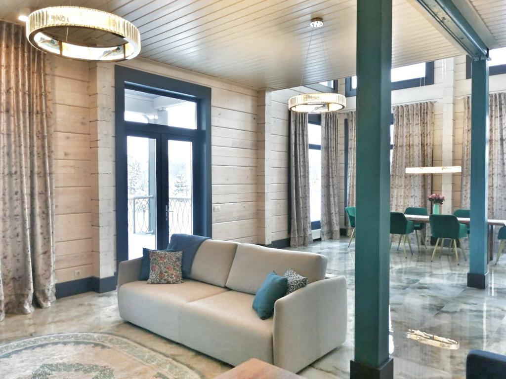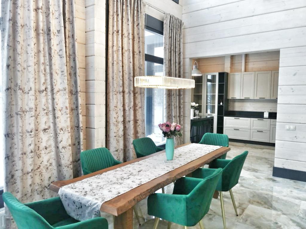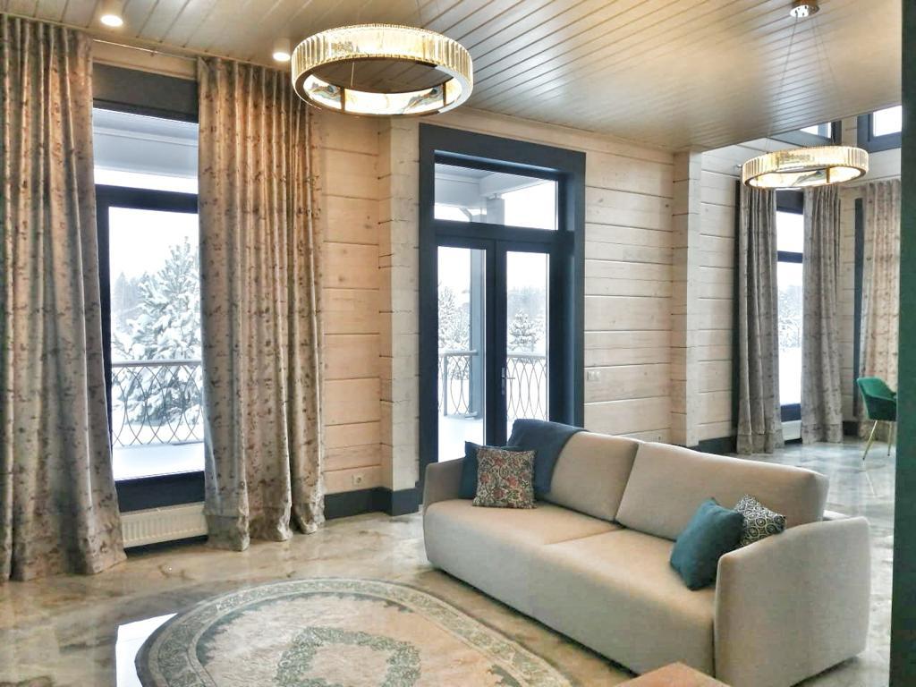 Коттедж 305.7 кв. м «под ключ» в закрытом охраняемом клубном поселке Голицыно-4. Дом 2022 года постройки из клееного бруса, фундамент монолитная плита. Технология HONKA. По финскому проекту из клееного бруса 200х360 мм (технология Honka, окрашивание американской краской Sherwin Williams). Панорамные окна, высота потолков больше 7 метров в зоне второго света и около 4 метров на 1-м этаже. Меблированные кухня (холодильник, СВЧ, духовка, индукционная варочная панель, посудомоечная машина), все с/у и мастер-спальня. Немецкие окна, высокие межкомнатные двери. Функциональный и эстетичный интерьер в теплой цветовой гамме. Из окон вид на сосны. Дом полностью готов к проживанию. 2 этажа.