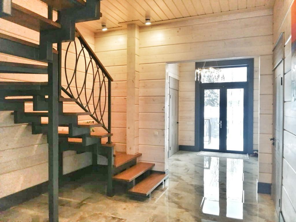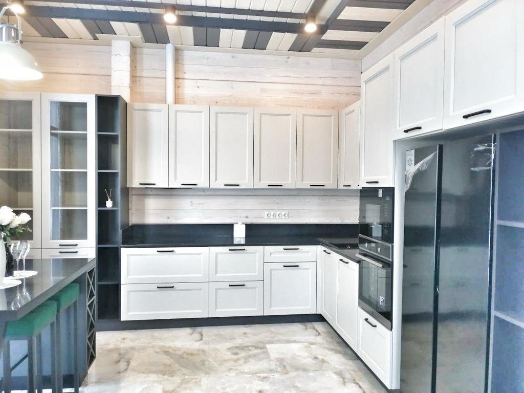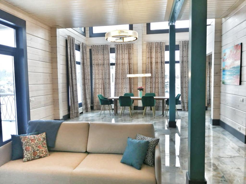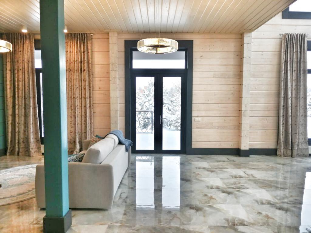 Коттедж 305.7 кв. м «под ключ» в закрытом охраняемом клубном поселке Голицыно-4. Дом 2022 года постройки из клееного бруса, фундамент монолитная плита. Технология HONKA. По финскому проекту из клееного бруса 200х360 мм (технология Honka, окрашивание американской краской Sherwin Williams). Панорамные окна, высота потолков больше 7 метров в зоне второго света и около 4 метров на 1-м этаже. Меблированные кухня (холодильник, СВЧ, духовка, индукционная варочная панель, посудомоечная машина), все с/у и мастер-спальня. Немецкие окна, высокие межкомнатные двери. Функциональный и эстетичный интерьер в теплой цветовой гамме. Из окон вид на сосны. Дом полностью готов к проживанию. 2 этажа.