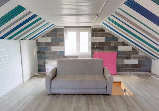 1 этаж: кухня, с/у, комната-гостиная, прихожая и коридор, кладовка.