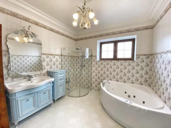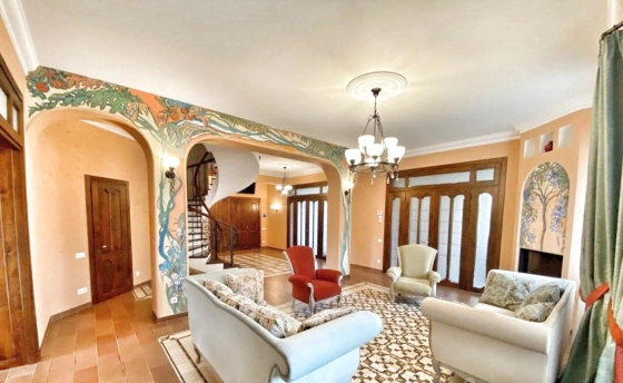 Коттедж 549 кв. м «под ключ» в закрытом охраняемом коттеджном поселке Чистые Ключи. Дом 2018 года постройки из кирпича с монолитными перекрытиями, фундамент монолитная плита. Строился для себя. Экстерьер дома — это великолепный образец гармоничных архитектурных решений. Фасад с подсветкой, ковкой, отделан штучной плиткой с декоративными элементами. Интерьер продолжает средиземноморскую тему, поэтому в отделке преимущественно использована плитка, дерево, ковка. Дом меблирован и полностью готов к проживанию. 3 этажа.