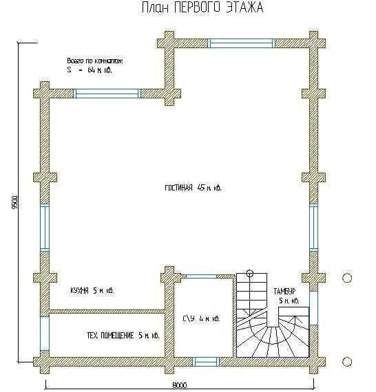 1 этаж: гостиная и светлая кухня, санузел и техническое помещение.