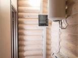 Коммуникации: электрокотел, колодец, септик, инфракрасный теплый пол на 1м этаже, электричество 15 кВт, газ по периметру поселка, ожидается подключение в течении года. Скрытая электропроводка, розетки, выключатели, светильники.