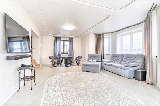Коттедж 199,6 кв. м «под ключ» в закрытом охраняемом коттеджном поселке Солнечный Город-2. Дом 2016 года постройки из кирпича, перекрытие монолитная плита, фундамент монолитная плита. Строился для себя. Ремонт современный, в гостиной и прихожей стены выполнены из венецианской штукатурки, в остальных помещениях обои, так же имеются ниши под встроенные шкафы. Дом меблирован и готов к проживанию. 3 этажа.