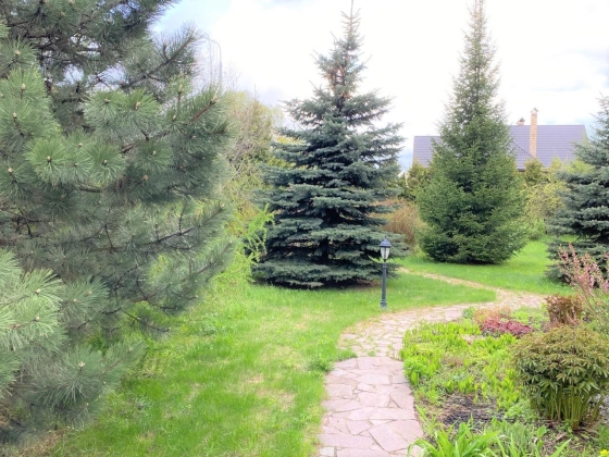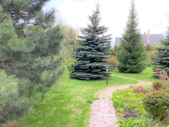 Участок 15 соток под ИЖС. Полностью интимная и тихая территория, закрытая взрослыми хвойными, лиственными и плодовыми деревьями. В саду установлены дубовые качели. Зона барбекю имеет отличный доступ - как из веранды дома, так и вокруг дома по садовым дорожкам. 3 машиноместа под навесами с возможностью парковки ещё 2 машин. Есть помещение мини-мастерской и отдельное помещение для хранения садового инвентаря.