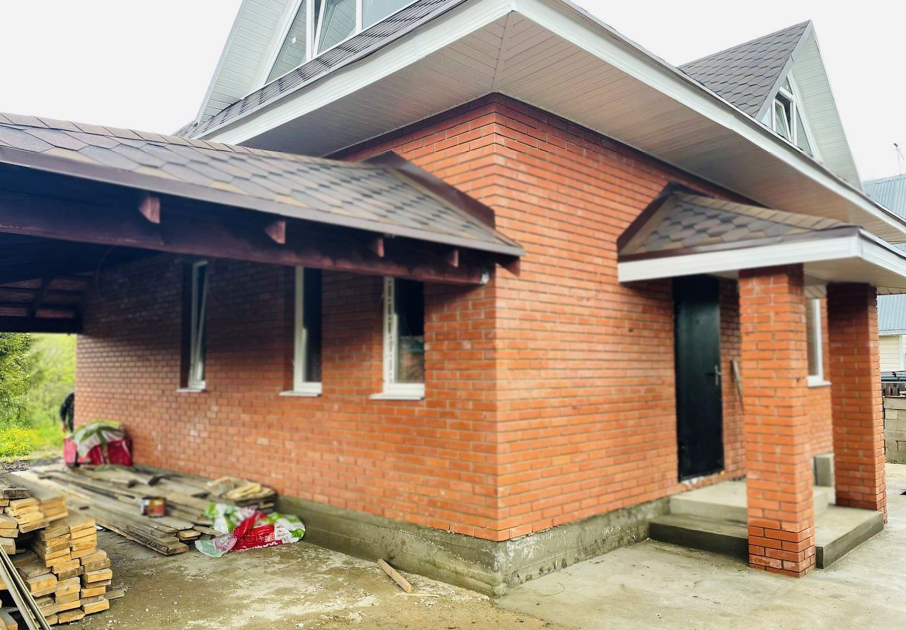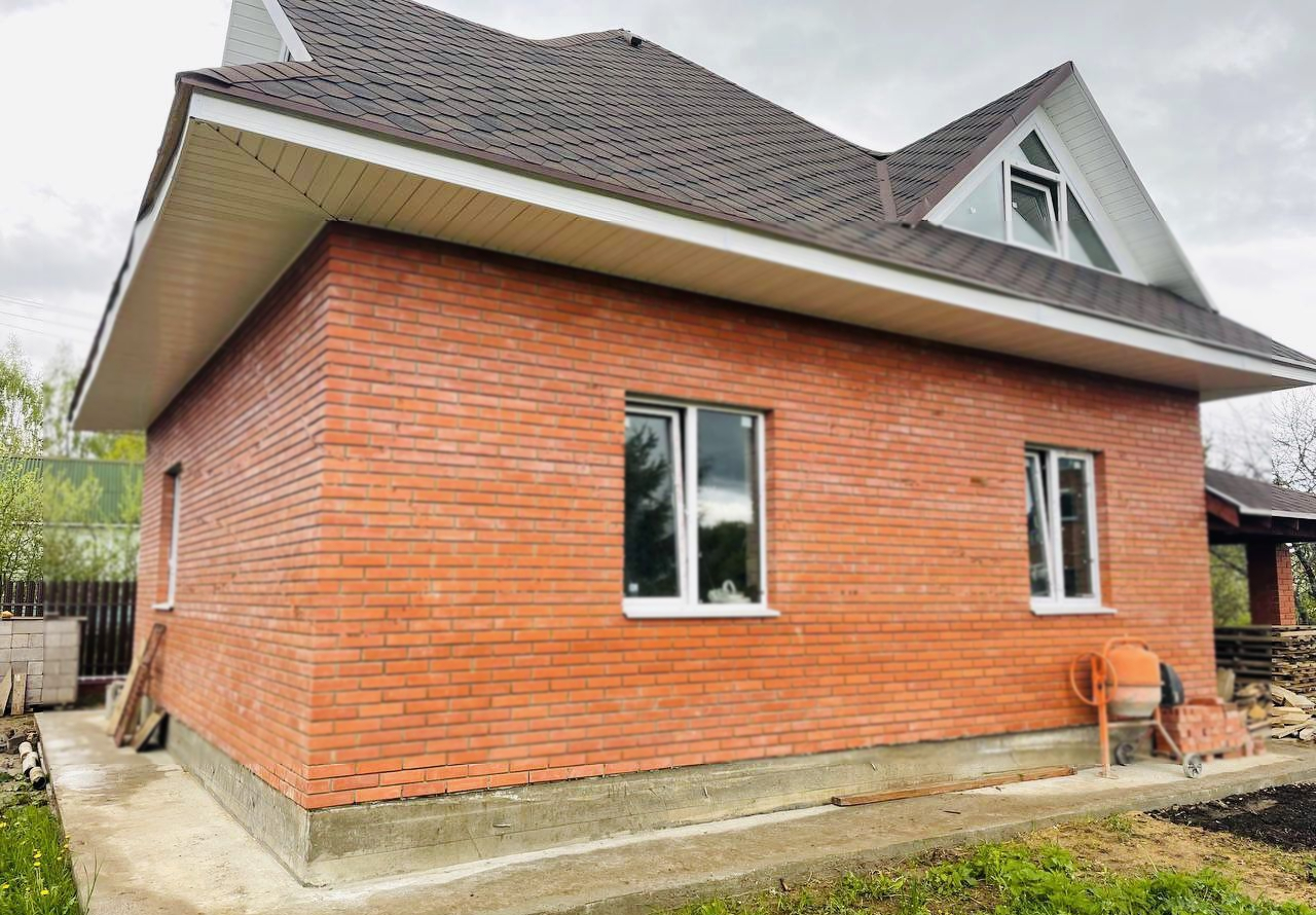 Коттедж 150 кв. м под отделку в стародачном огороженном поселке СНТ Зенькино. Дом 2021 года постройки из керамзитного блока на ленточном фундаменте, крыша - мягкая черепица, утепление 200 мм. Коттедж построен по проекту от Альфаплан G79с. 2 этажа.