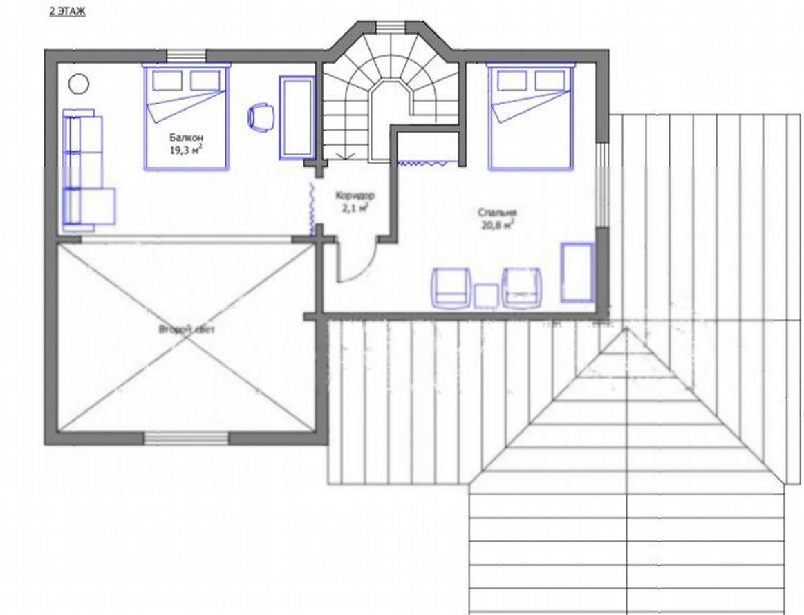2 этаж: 2 спальни, коридор, санузел с душевой.