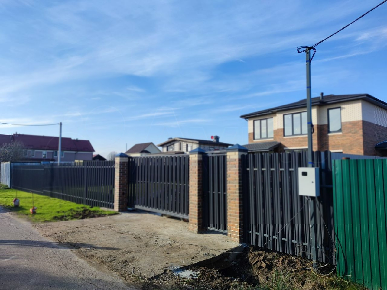 Участок 9 соток под ИЖС. Участок правильной формы, огорожен по периметру, установлены автоматические ворота. Дорожки. Посажен газон. Подъезд к участку асфальтированный. Дом в тихой части. Все соседи построены и проживают круглогодично.