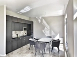 1 этаж: кухня-гостиная, гостевая спальня, с/у, техпомещение (бойлерная-прачечная, кладовка под лестничным маршем). Высота потолков 3 м.