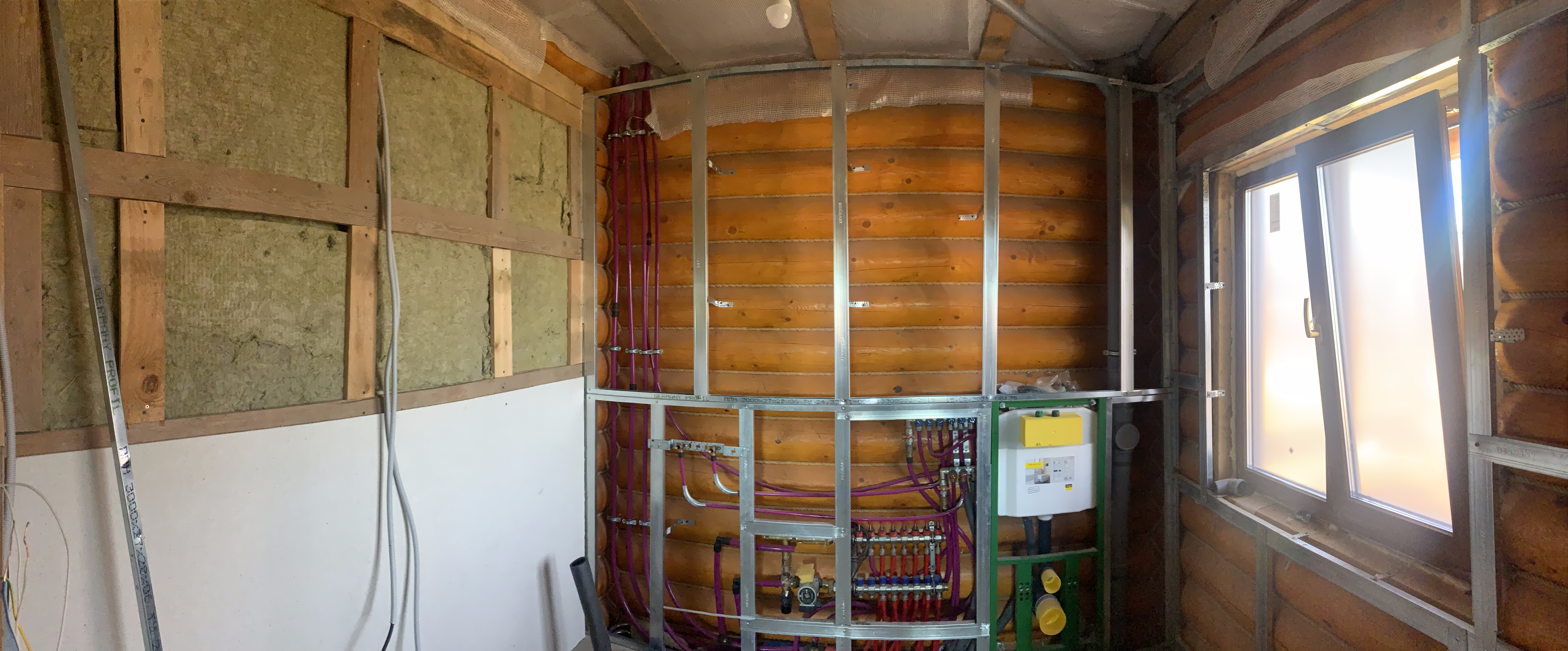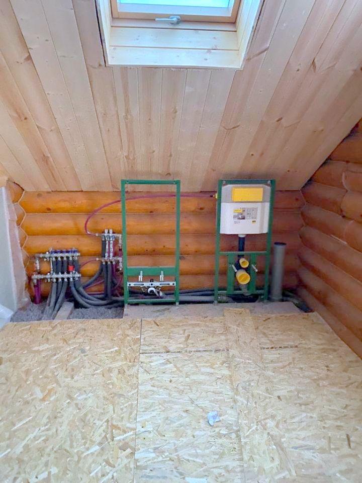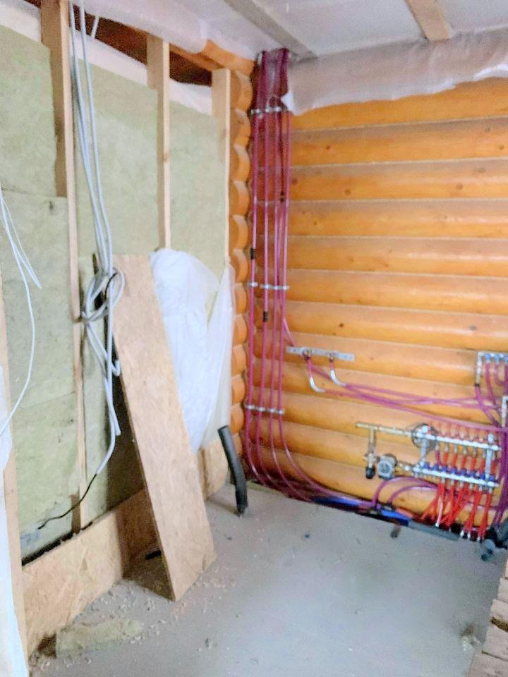Коммуникации: газгольдер на 8 кубов, септик на 6 кубов (кристалл), артезианская скважина 137 метров (кессон, немецкий нанос, пульт для регулировки давления подачи воды заведен в бойлерную, вывод воды на улицу для полива), на участок заведен поселковый водопровод; электричество. Все коммуникации разведены по дому. В доме на первом этаже теплые водяные полы, радиаторы. Пол на втором этаже утеплен и звукоизолирован. Электрика разведена по проекту по дому и на улице. Дом внутри полностью готов к чистовой отделке. Установлены все инсталляции - для унитазов, биде и раковин. Сделаны выводы под душевые кабины и зашиты. В бойлерной собран полностью щиток. Куплен напольный газовый конденсационный котел со встроенным бойлером 150 литров. Капитальный забор - наращён и поднят ленточным фундаментом по двум сторонам для вывода дренажей за пределы участка.