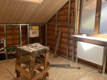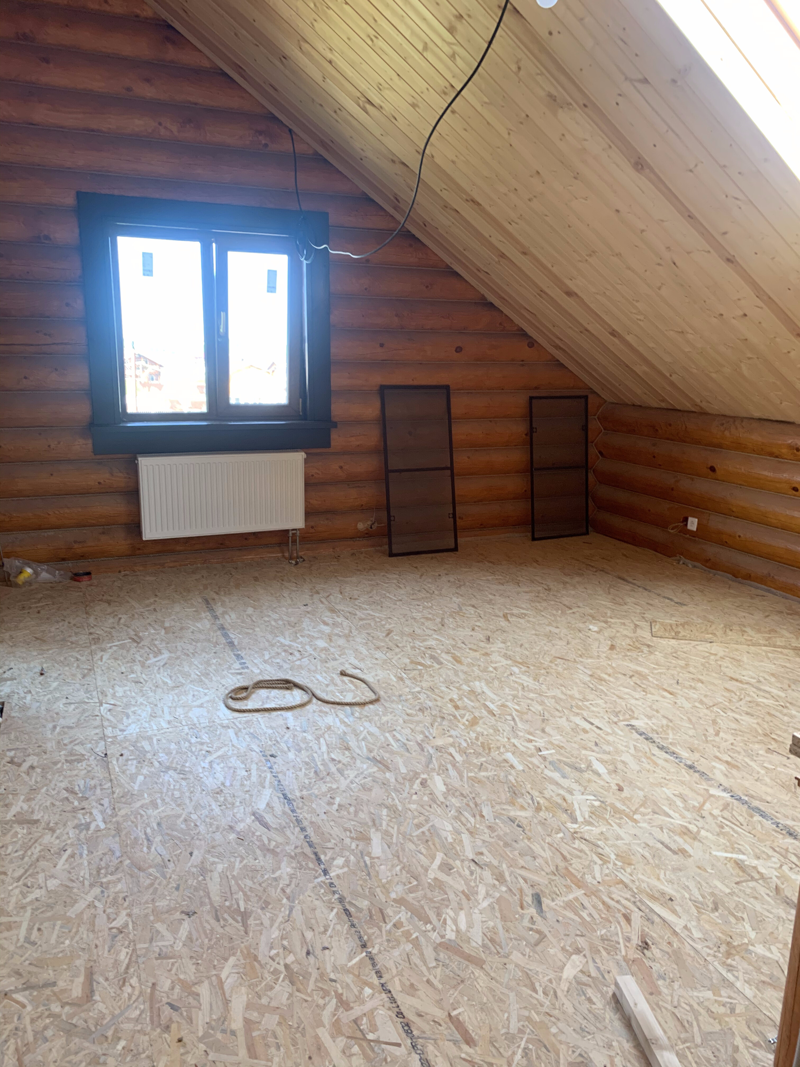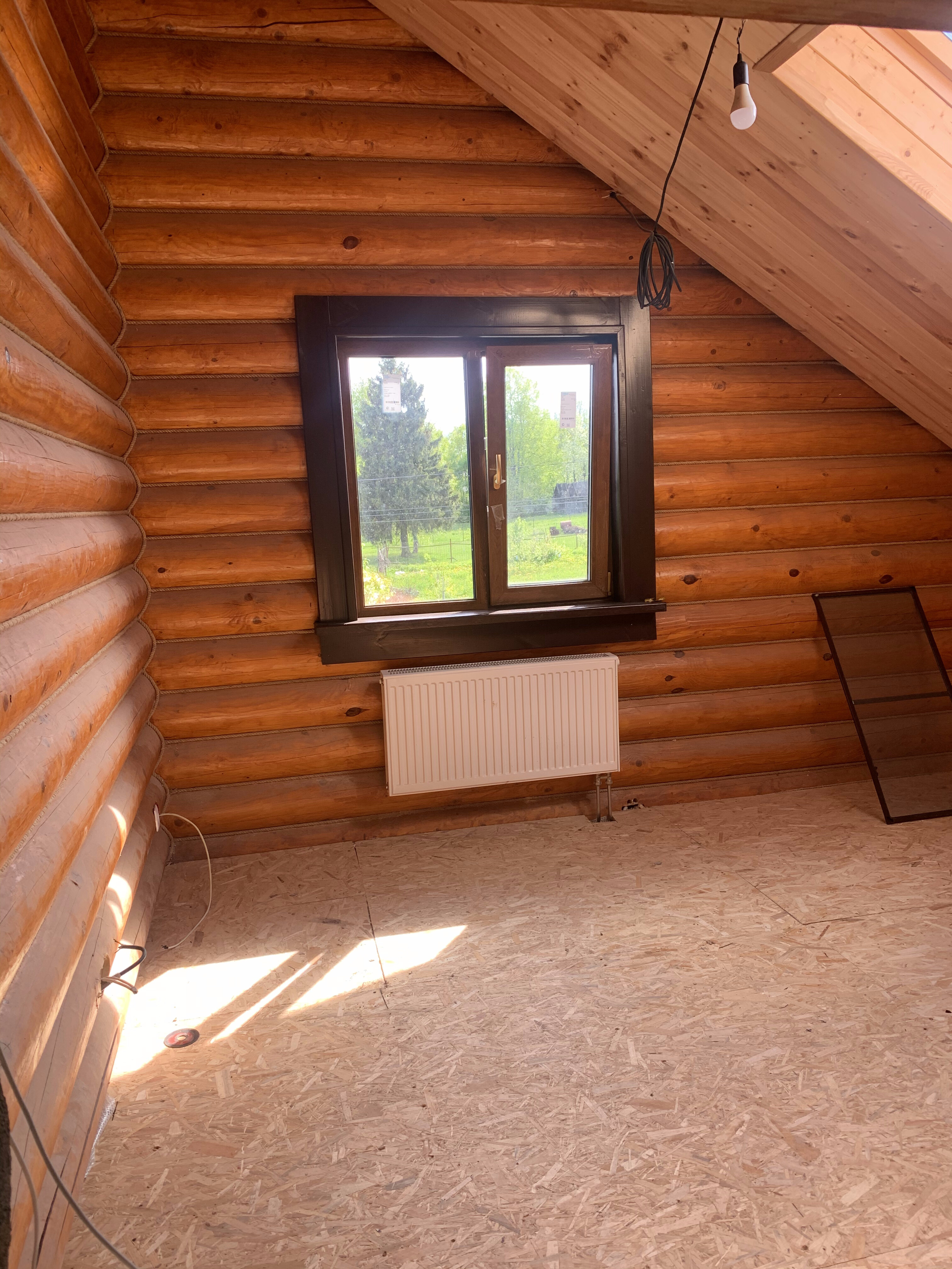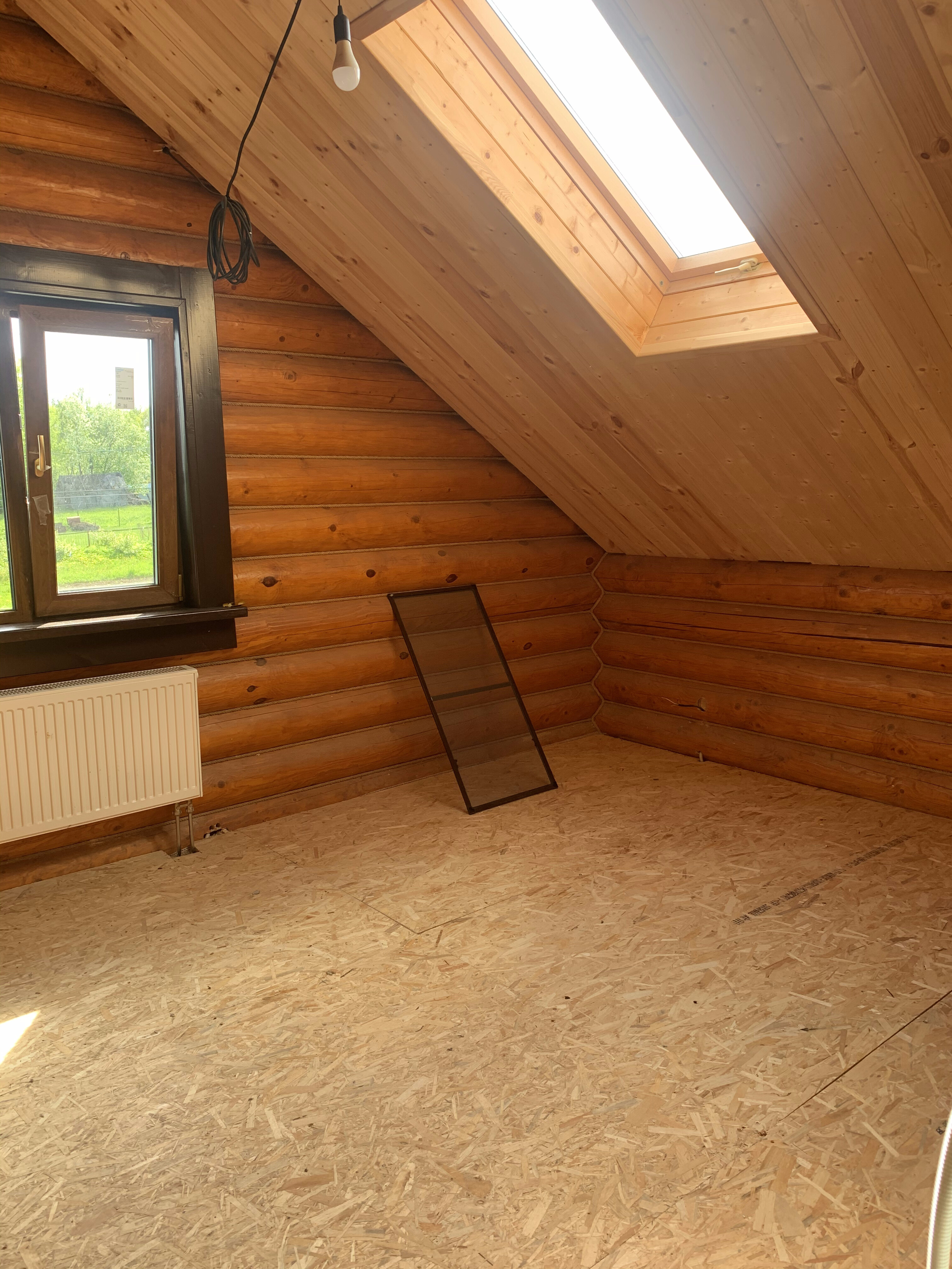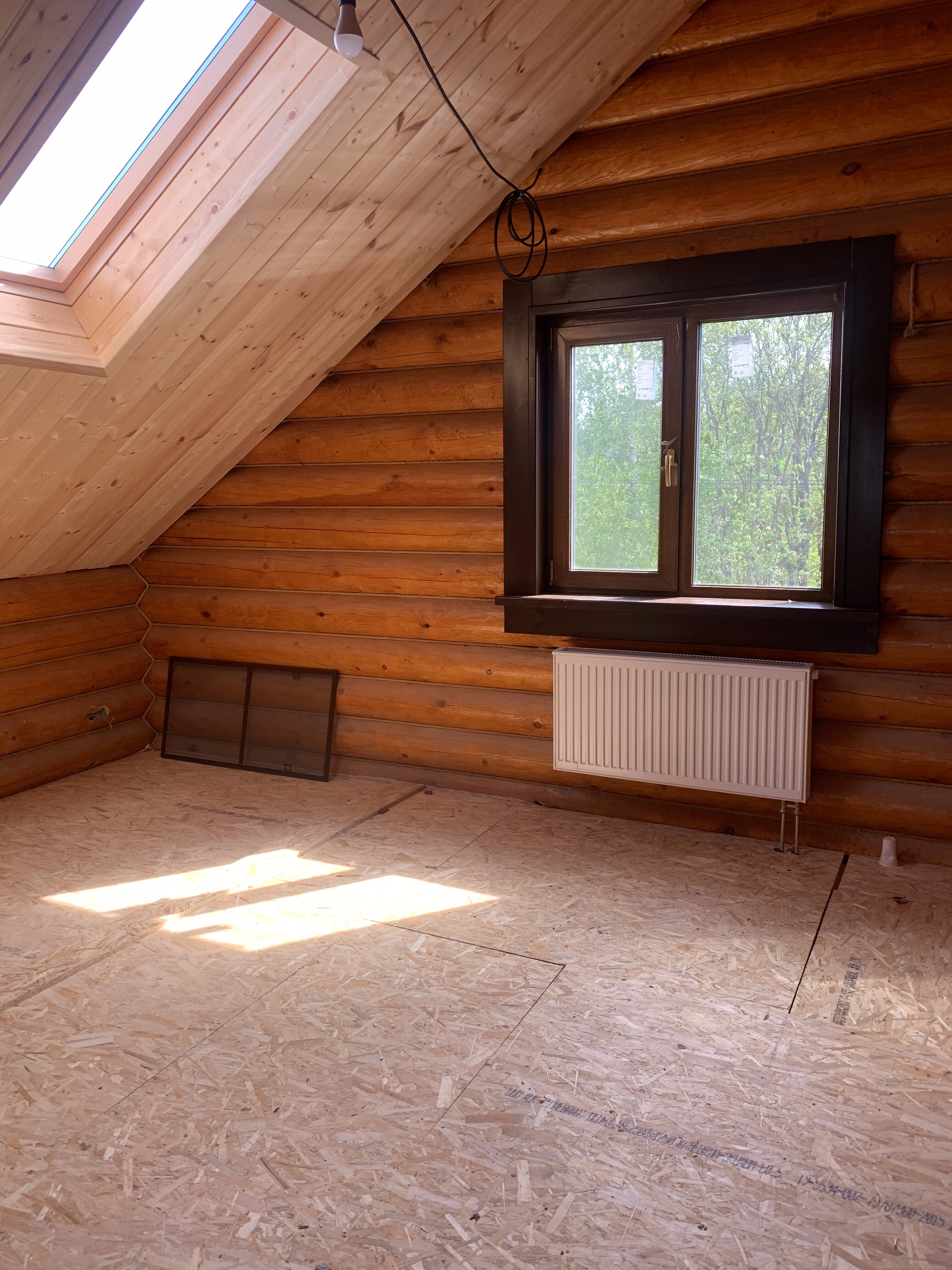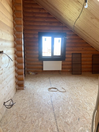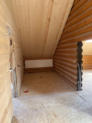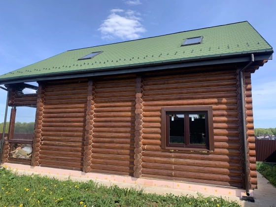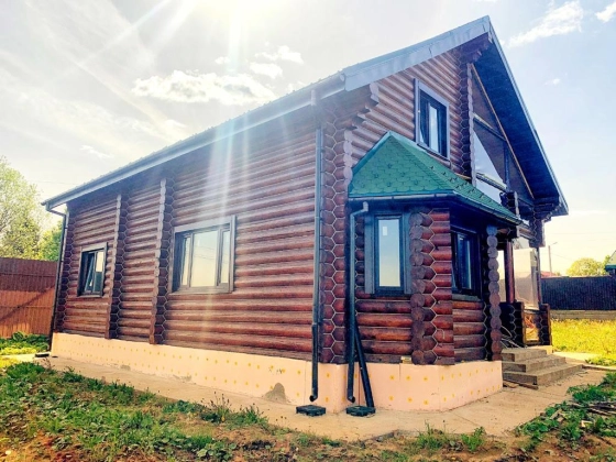 Коттедж 200 кв. м под финишную отделку в закрытом охраняемом коттеджном поселке ДПК Никитское. Дом 2018 года постройки из оциллиндрованного бревна 240 мм на ленточном фундаменте. Крыша - утепленная мягкая кровля с мансардными окнами. Строился для себя. 2 этажа:
