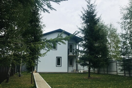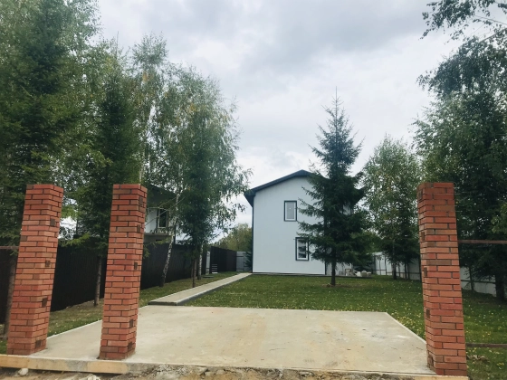 Коттедж 113 кв. м «под ключ» в солидной коттеджной застройке д. Крючково. Дом 2021 года постройки из газосиликатного блока с монолитными перекрытиями на монолитной железобетонной плите на свайном поле, внешнее утепление фасада. Дом частично меблирован (установлена кухня), полностью готов к проживанию. 2 этажа. 3 спальни.