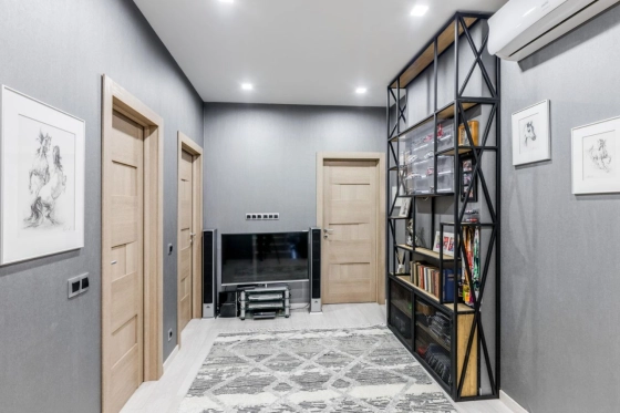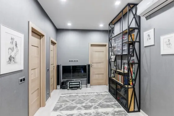 2 этаж: просторный холл с системой хранения выполненной на заказ по индивидуальным чертежам, 2 детские комнаты, кабинет (или 3я детская), просторный санузел.