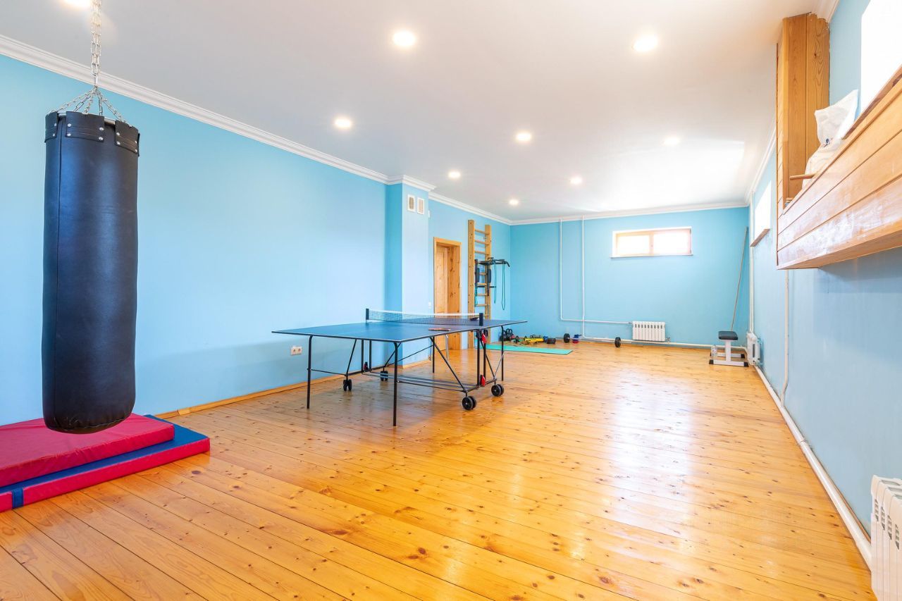 3 цокольный этаж: большая комната, спортивный зал с теннисным столом, боксерской грушей и турником, техническое помещение с котлом, складское помещение.