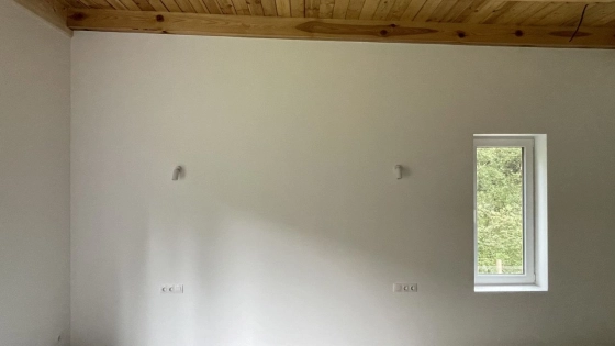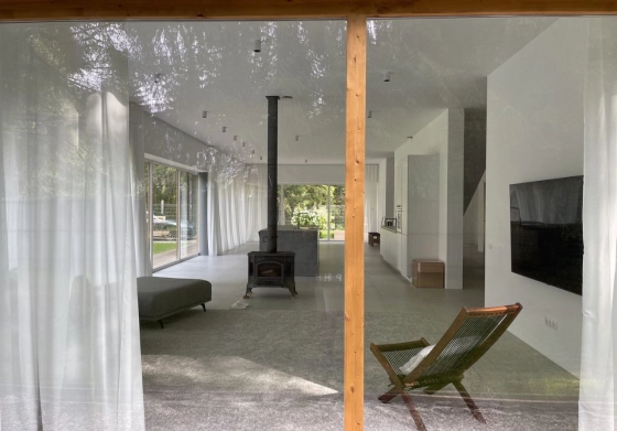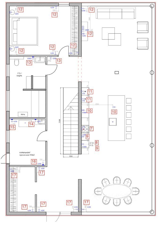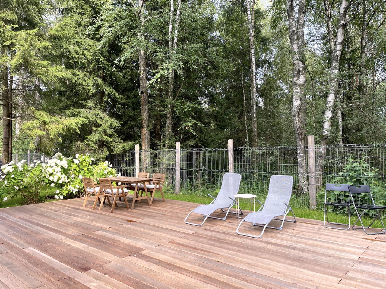 1 этаж - прихожая, кухня – столовая – гостиная с камином и с выходом на веранду, спальня, с/у, сауна.
