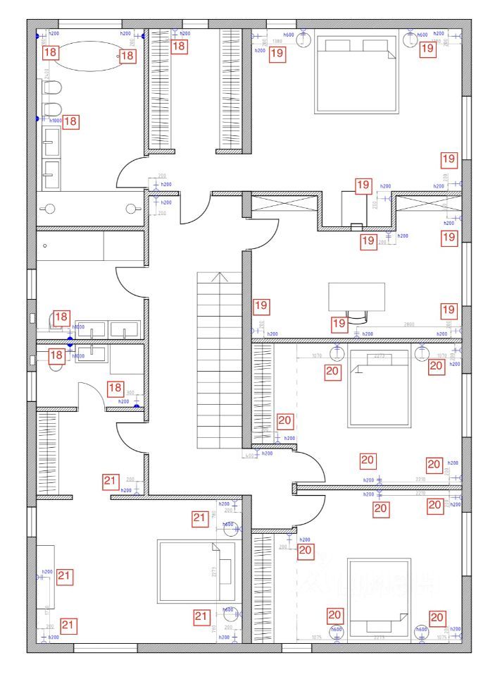 2 этаж – 2 мастер спальни с собственными с/у и гардеробными, 2 спальни, кабинет, с/у.