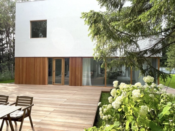 Коттедж 367 кв. м «под ключ» в ДСК Имени Ларина. Дом 2022 года постройки из кирпича с утеплением и штукатурным фасадом. Перекрытия и фундамент - монолитная плита. Панорамное остекление на 1 этаже. Тёплые полы. Строился для себя. В строительстве и отделке использовались только качественные дорогие экологически чистые материалы.