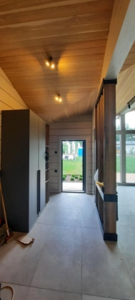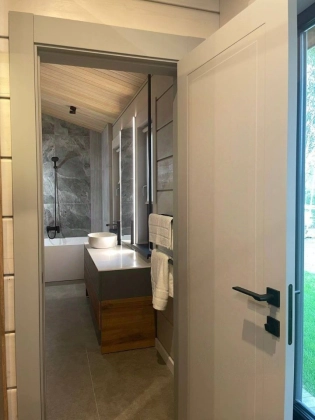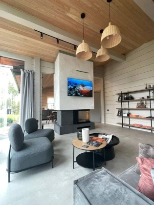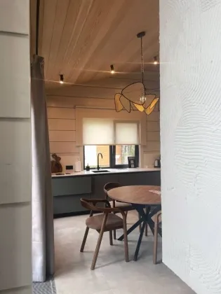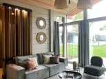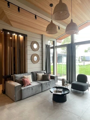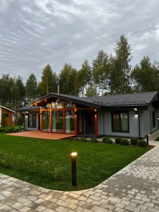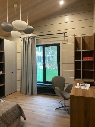 Коттедж 141 кв. м «под ключ» в закрытом охраняемом коттеджном поселке Грин Лаунж. Дом из клееного бруса, фундамент монолитная плита, спроектированный и построенный по последним трендам Asuntomessut. Экологичный клееный брус, сечением 270*204. Кровля натуральная черепица. Эркер выполнен по фахверковой технологии. Только современные дорогостоящие материалы. Полноценный камин. Чистовая отделка по дизайн-проекту в японско-скандинавском стиле. Предусмотрено место для прачечной, в хоз. помещении дома. Дом полностью меблирован и готов к проживанию. 1 этаж.