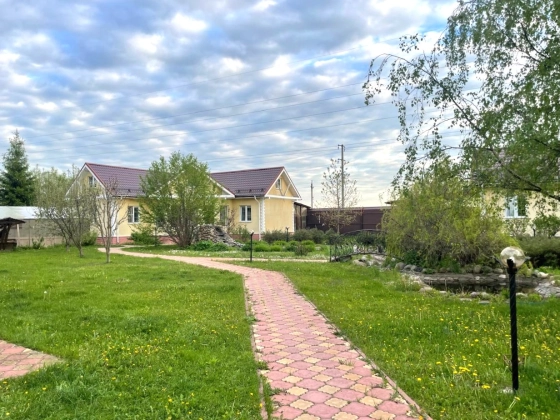 Киевское ш., 25 км, д. Поповка. Коттедж 147 кв. м из кирпича 2010 года постройки. 2 этажа. 1 этаж: прихожая, библиотека, кухня, 2 комнаты свободного назначения, у комнат есть выход на улицу, санузел (душевая кабина). 2 этаж: кухня, совмещенный санузел с ванной, 2 комнаты для персонала . Около дома теплица, за домом огороженный загон для птиц, колодец. Коммуникации: электричество 30 кВт на 3 дома. газ магистральный, вода 2 скважины, канализация 2 септика. Имеется резервный генератор. Участок 30 соток с ландшафтным дизайном, газон, дренаж, пруд, альпийская горка, фруктовые, декоративные деревья и кустарники, дорожки брусчатка. Ворота автоматические. Обжитая деревня, солидное окружение. Рядом вся необходимая инфраструктура. Удобная транспортная доступность с Киевского и Калужского шоссе.