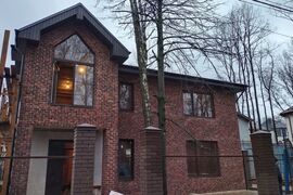 Коттедж 161 кв. м под отделку в закрытом охраняемом коттеджном поселке Лесные Поляны. Дом 2023 года постройки из кирпича с монолитными перекрытиями на монолитном фундаменте. Стены дома утеплены пенополистиролом 10 см, внешняя отделка плитка White Hills, полное остекление ламинированными окнами. Все перекрытия, лестницы и балконы - монолитный железобетон. Дом и участок зарегистрированы, окончание отделочных работ май 2024. Планировка свободная, возможно размещение 3 отдельных спален.