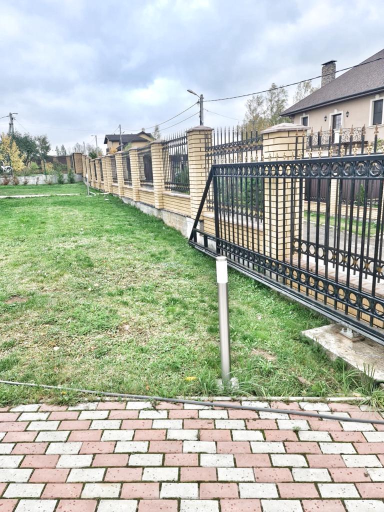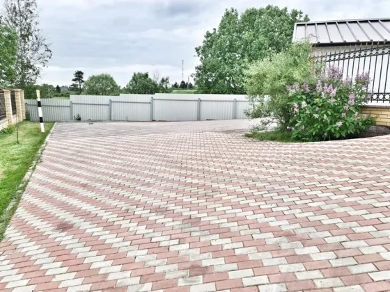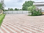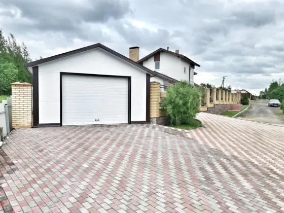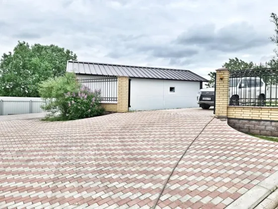 Участок 10 соток. На участке отдельно стоящий гараж, мощеные въездная группа, дорожки и площадки, газон, туи, теплица.