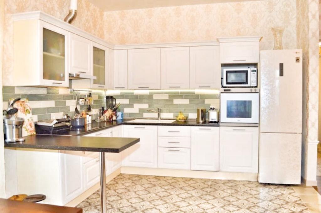 Кухня/гостиная, застекленная теплая терраса, 3 комнаты, гардеробная, 3 с/у, гардеробная, гараж.