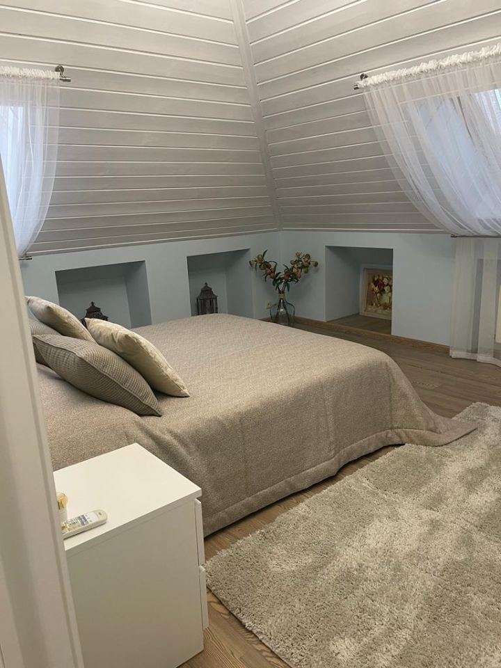 3 этаж: большой холл с мягкой мебелью (кинозал), большая спальня, гардеробная (кабинет), санузел с душевой.