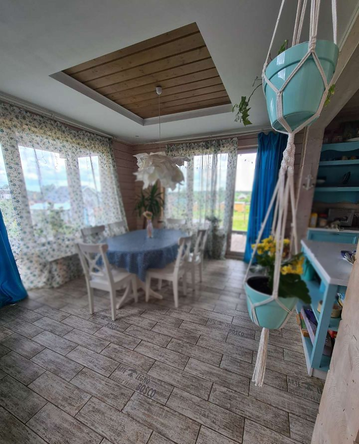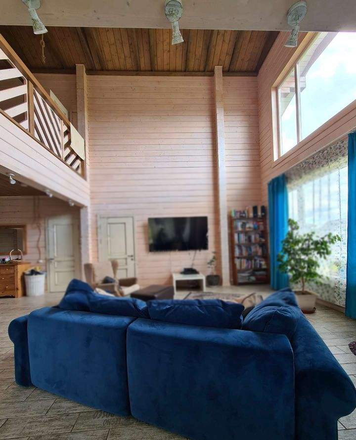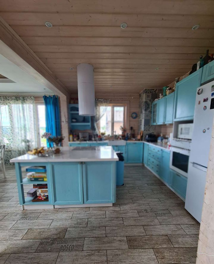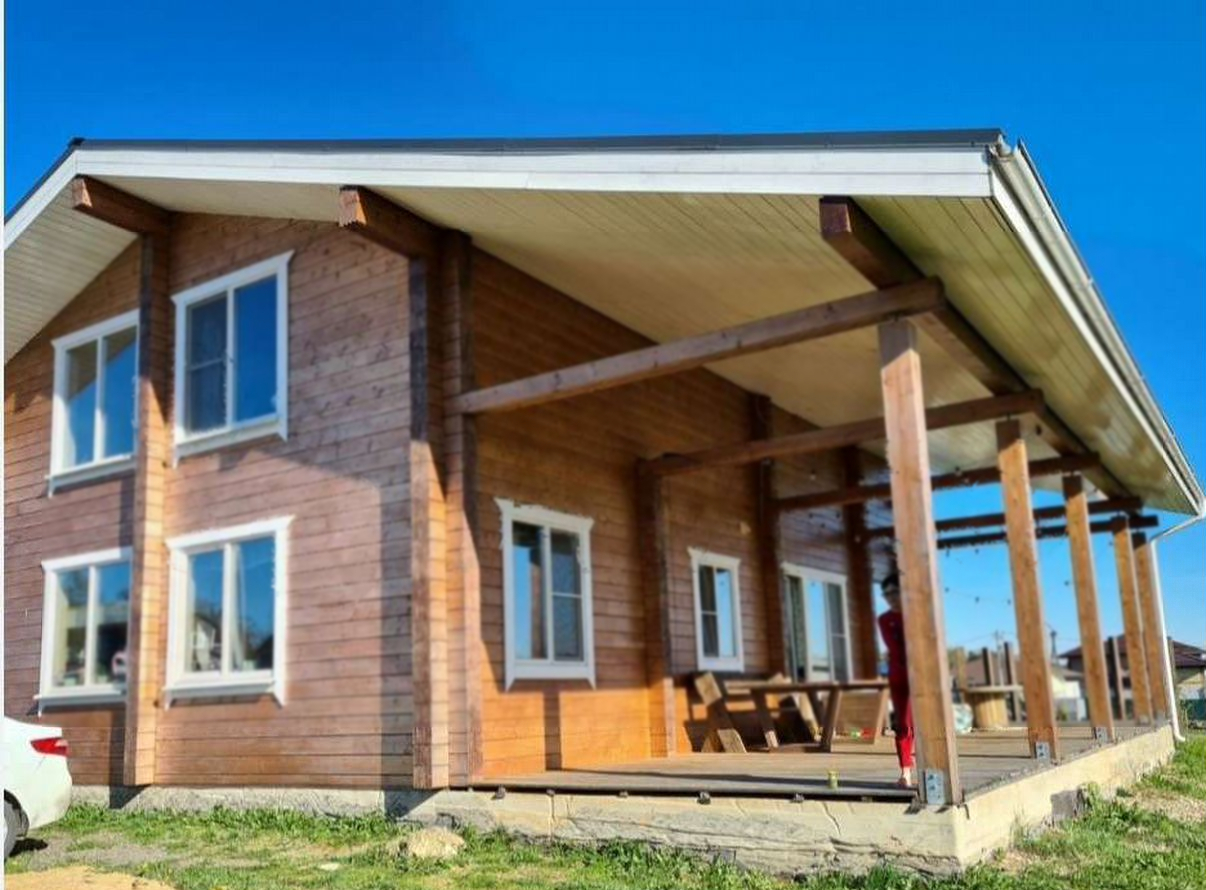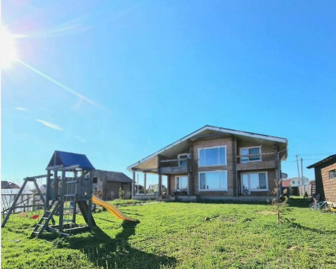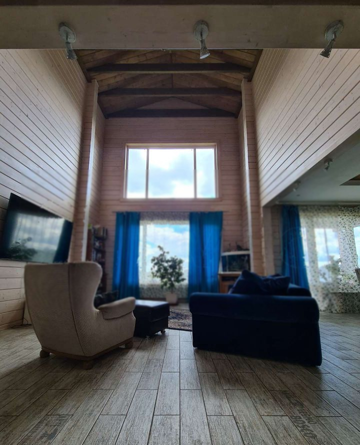 Коттедж 218 кв. м «под ключ» в солидной коттеджной застройке д. Веревское. Дом 2017 года постройки из клееного бруса на ленточном фундаменте, крыша - металлочерепица, утепление 300 мм. Панорамное остекление во всём доме, на 2 этаже мансардные окна. Дом меблирован и полностью готов к проживанию. 2 этажа.