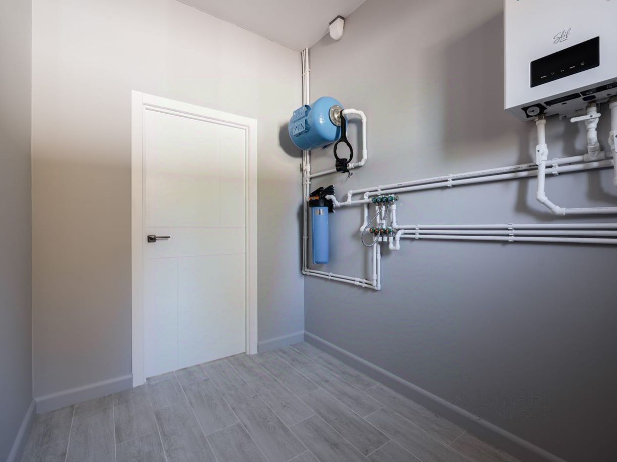 Коммуникации: электричество 15 кВт, скважина, септик. Газ на участке. ТУ получены. Теплый пол на первом этаже.