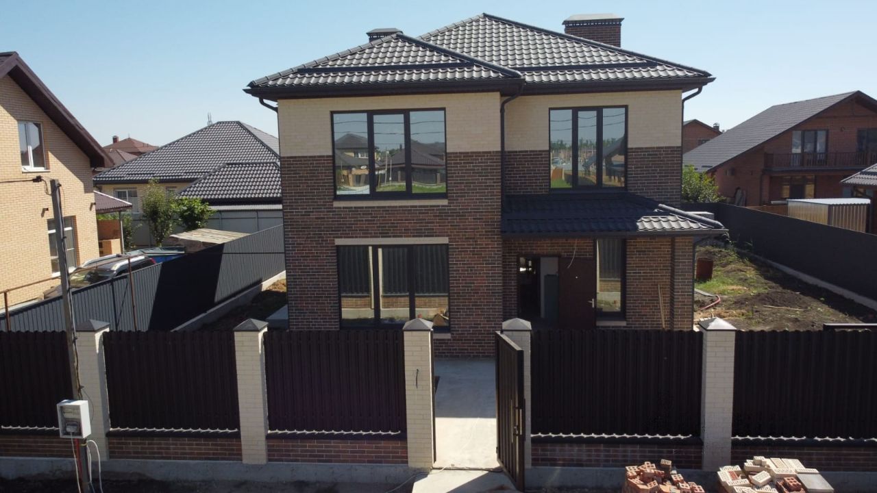 Коттедж 230 кв. м под финишную отделку в солидной коттеджной застройке Петрово-Дальнее. Дом 2022 года постройки из газобетонных блоков с использованием фасадной системы АМК, перекрытия плиты на ленточном фундаменте. Крыша - металлочерепица. Утепление - стяжка, окна VIP с энергосбережением. На заднем фасаде предусмотрено место для строительства террасы. Возможен ремонт дома согласно всем вашим пожеланиям под ключ. 2 этажа. 5 спален, 2 на первом этаже.