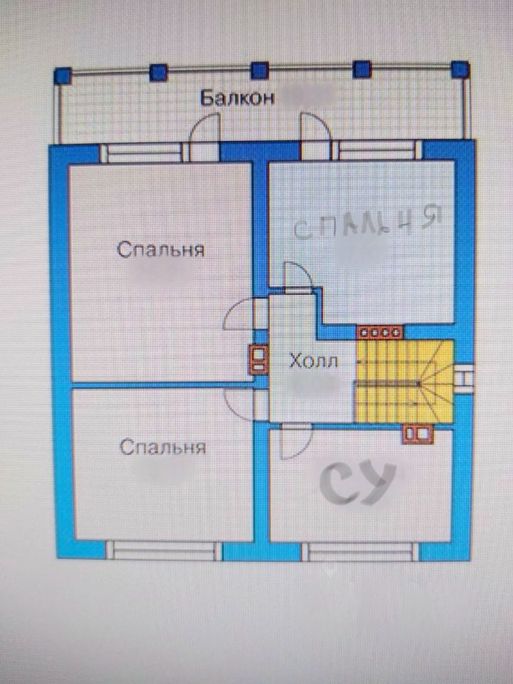 2 этаж: 3 спальни, холл, санузел, балкон.