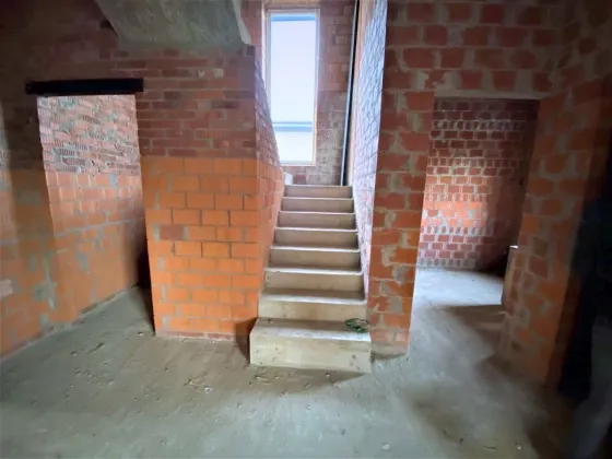 Коттедж 237 кв. м под отделку в закрытом охраняемом коттеджном поселке Николо-Пятницкое. Дом 2018 года постройки из кирпича с монолитными перекрытиями, фундамент монолитная плита, наружная отделка темный облицовочный кирпич, крыша метало-черепица. Межкомнатные перегородки возведены. 2 этажа.