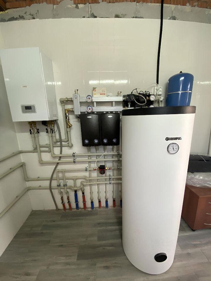 Коммуникации: электрокотел, центральные водоснабжение и канализация, теплые полы, электричество 25 кВт. Поселок начал газифицироваться в 2022 году, газ заведен в дом.
