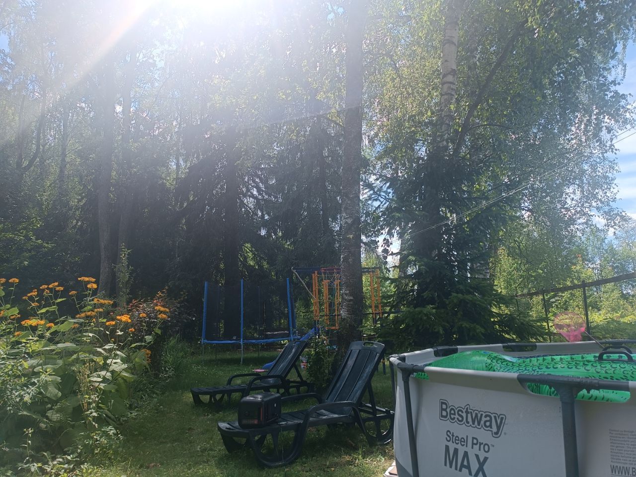 Участок 9.27 сотки. На участке имеются дубы, ели и березы, детская площадка, навес под машины, мангал, зона для барбекю, спокойные соседи. Закрытый камерный коттеджный поселок всего из 14 участков с уличным освещением, с порядочными благородными соседями. Дом под вневедомственной охраной, находится в лесном массиве.