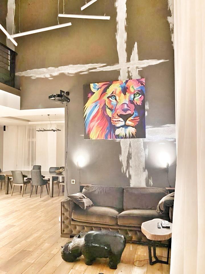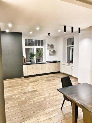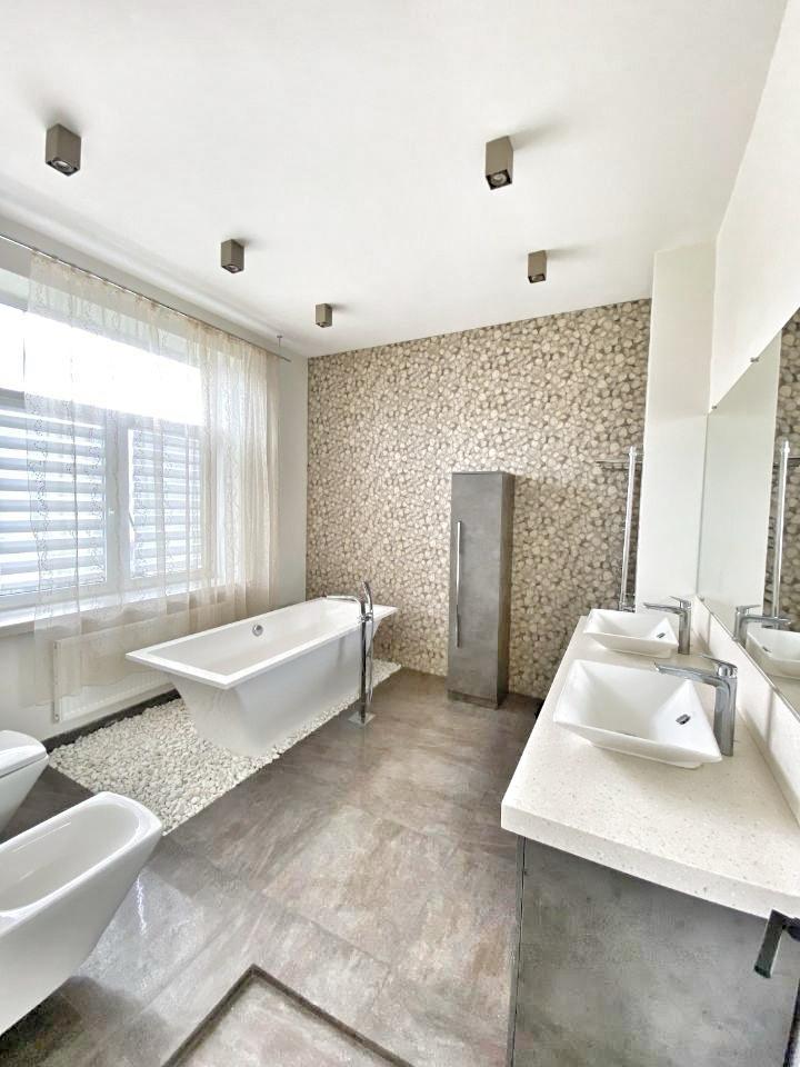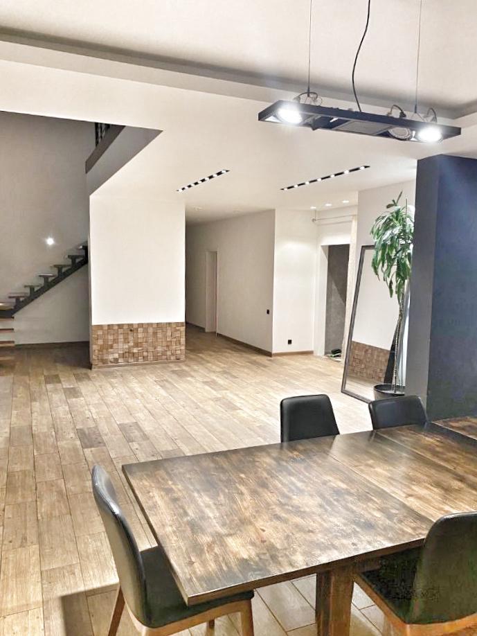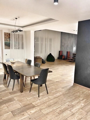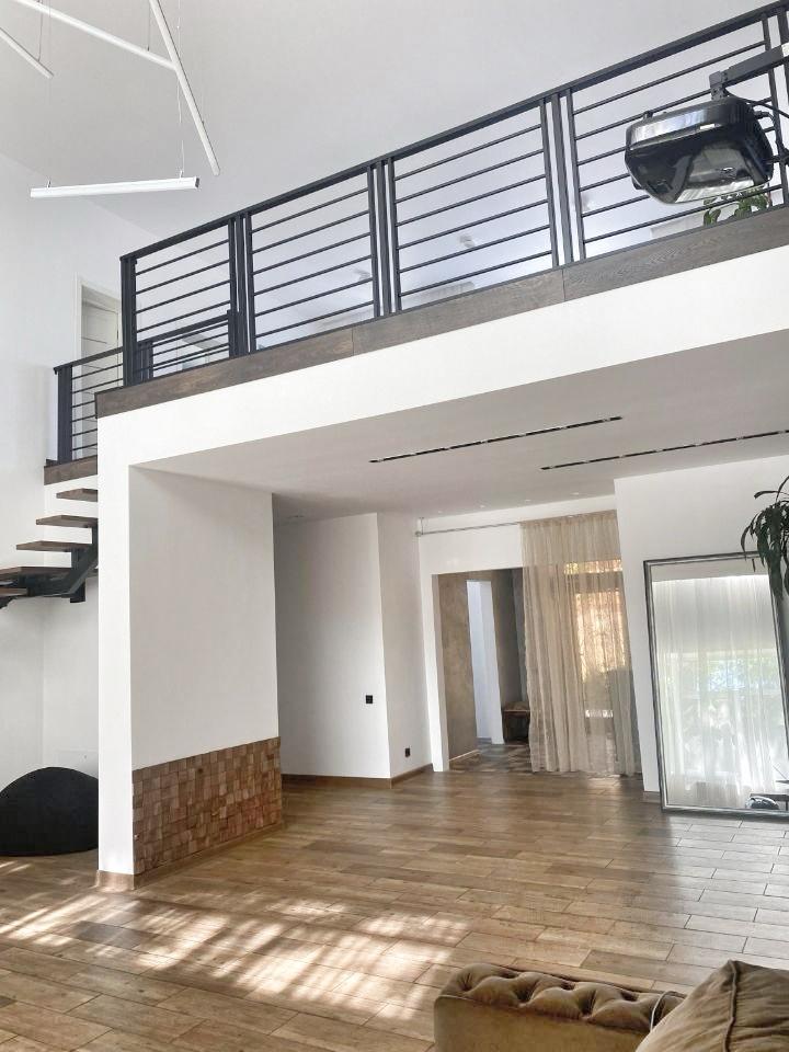 Наружняя отделка декоративная штукатурка. Кровля металлочерепица. Полы керамогранит с системой тёплых полов на первом этаже и в с/у второго этажа; ламинат (Франция). Высота потолков: 1 этаж - 3 м, 2 этаж - 3.3 м, второй свет - 6.5 м. Дом светлый, просторный, меблирован, полностью готов к проживанию. 2 этажа + большое чердачное помещение.