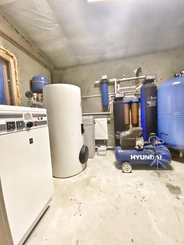 Коммуникации: электричество 15 кВт, магистральный газ, 2 септика Юнилос, артезианская скважина 75м; вывоз мусора. Водяной тёплый пол на всем первом этаже и санузле второго этажа.