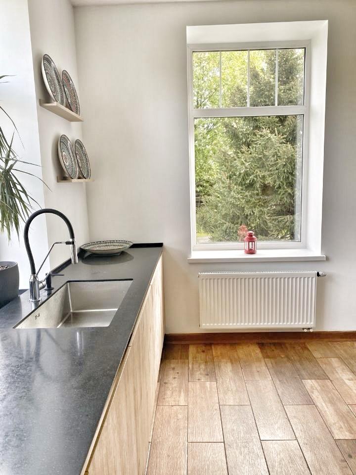 1 этаж - кухня-столовая с выходом на террасу, переходящая в гостиную со вторым светом, спальня, санузел с окном, бойлерная с отдельным входом.