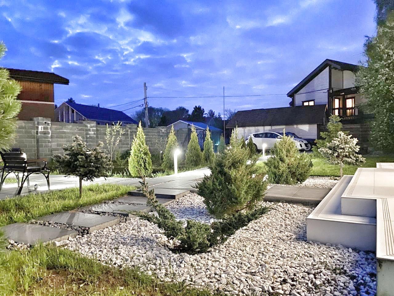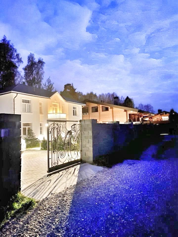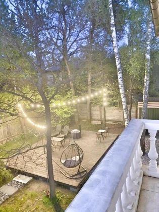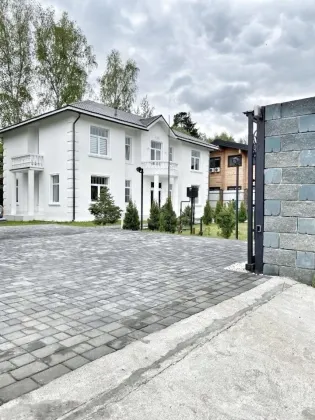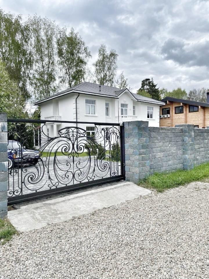 Участок 13 соток. На участке ландшафтный дизайн с освещением, ворота и калитка - ковка авторской работы, въездная группа брусчатка, молодые плодовые кусты и деревья. Задний двор выходит в лесной массив на патио с зоной барбекю в окружении взрослых берёз и дубов.