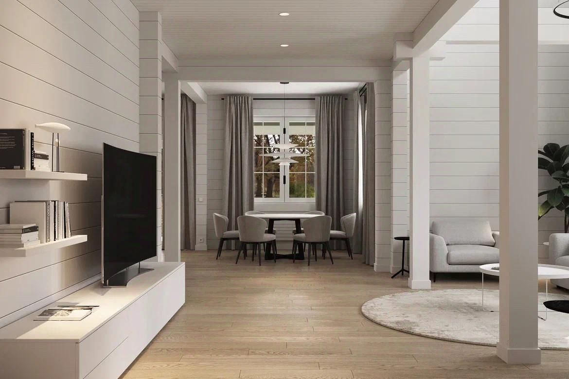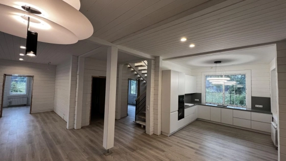 4 спальни, кабинет, котельная, прачечная, большая кухня-гостиная со вторым светом и очень большая терраса более 60м2.