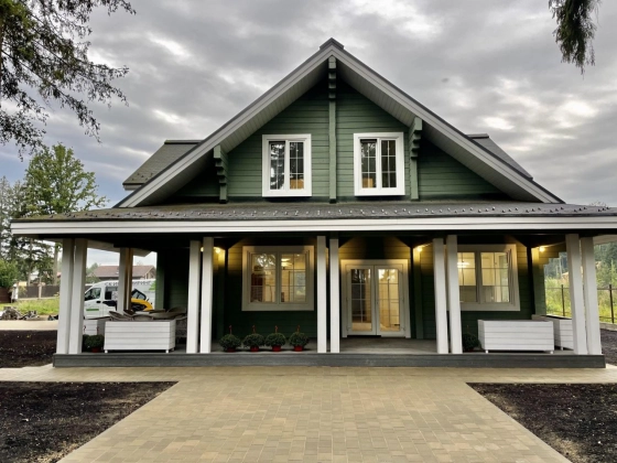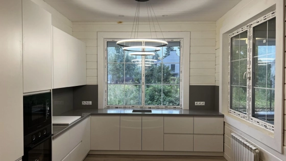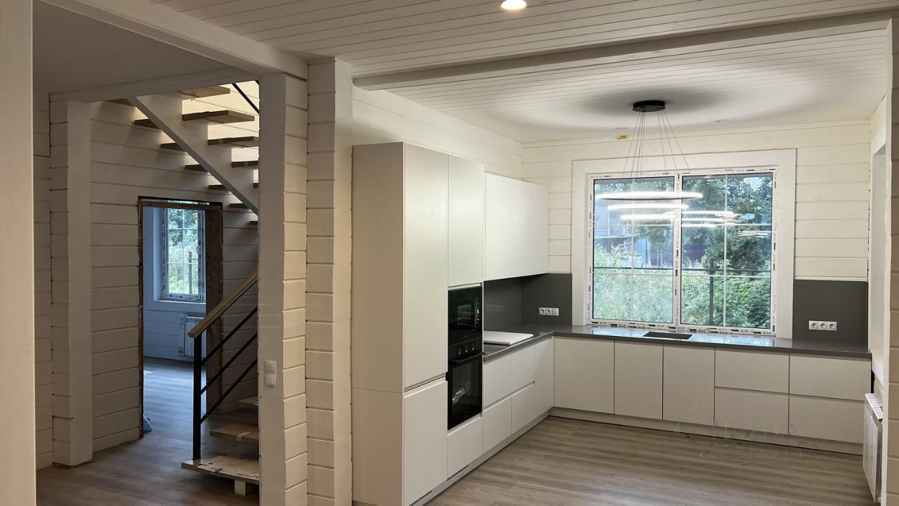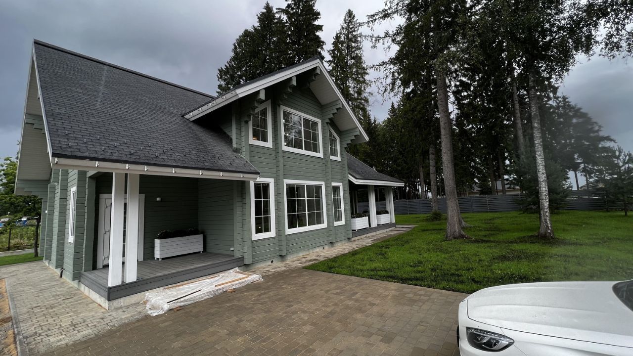 Коттедж 295 кв. м «под ключ» в закрытом охраняемом коттеджном поселке Экопарк Ушаково. Дом 2023 года постройки из профилированного бруса, фундамент монолитная плита. Сделан стильный качественный ремонт, красивое освещение и полностью оборудован электротехникой, холодильник, микроволновая печь, духовка, плита и посудомоечная машина. На кухне перед раковиной большое панорамное окно. Дом меблирован и готов к проживанию. 2 этажа.