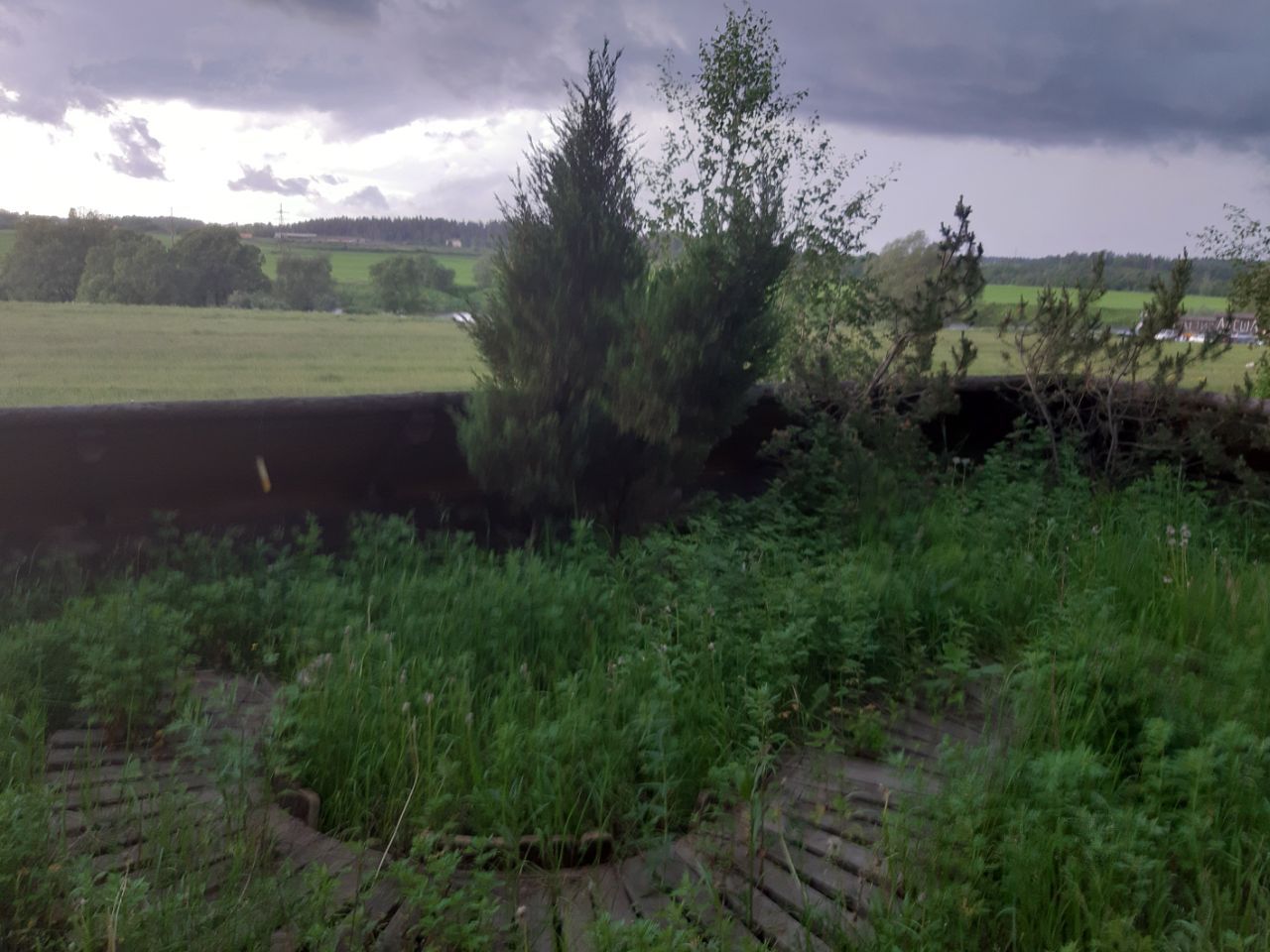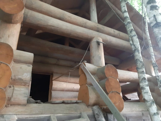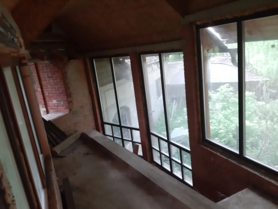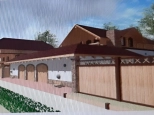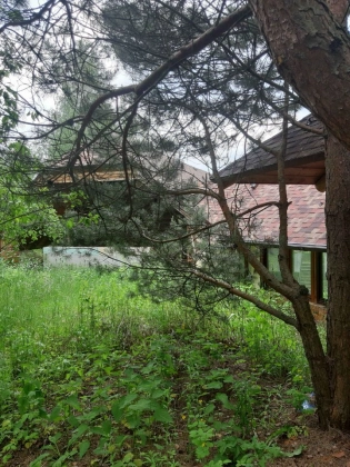 2 уровень: сам дом 2 этажа 180 м2 под отделку, в бетоне и бревне, к нему примыкает терраса барбекю 30м2 и зелёная видовая терраса на крыше гаража 80 м2 - выход со второго этажа дома.