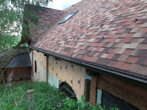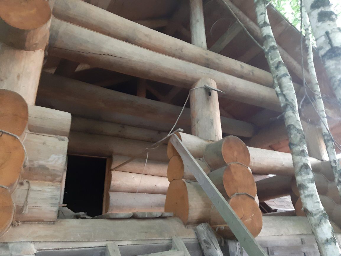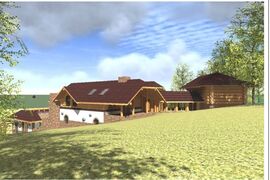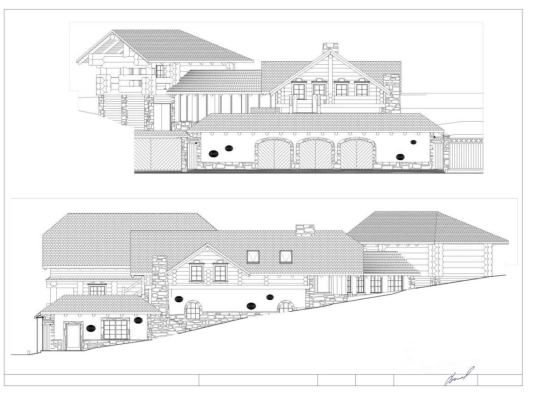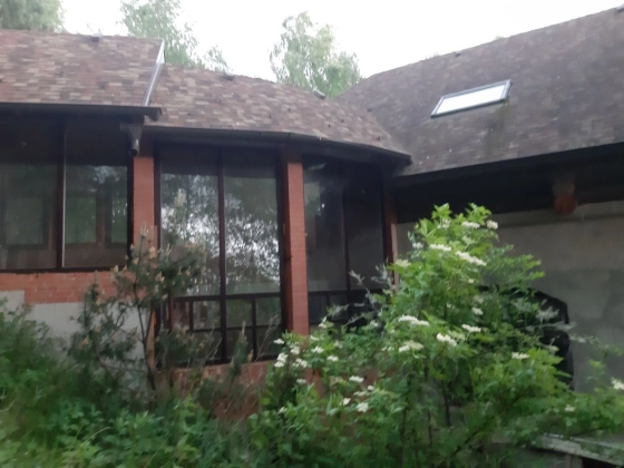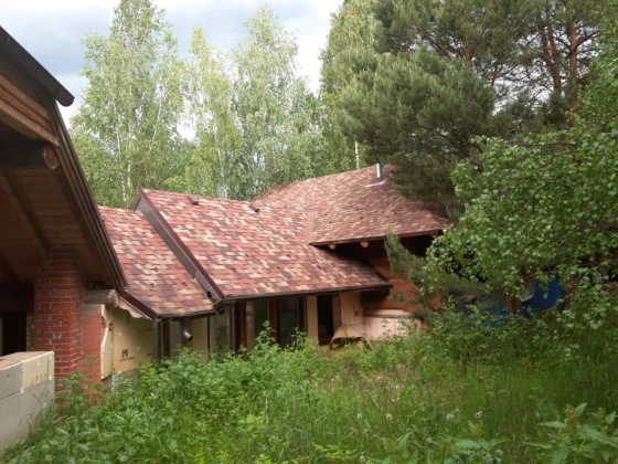 Коттедж 320 кв. м под отделку в солидной коттеджной застройке д. Волково. Дом 2006 года постройки из кирпича и бревна с железобетонными перекрытиями, фундамент монолитная плита. Строился для себя. Дом построен по индивидуальному проекту, скорее это комплекс из строений, удачно вписанный в высокий берег. Первый этаж - кирпич, второй - кирпич- бревно. На участке 40 тонн натурального камня для отделки территории + натуральное дерево для постройки лестниц + много других строительных материалов, которые не нужно покупать. Дом (180 м2 + 30 м2) + баня (40м2) + крытая галерея с погребом (40 м2) + гараж(95м2) + 40т камня+ дерево для отделки. Имеется проект. Рядом стоящие дома в едином стиле, один архитектор. 2 этажа.