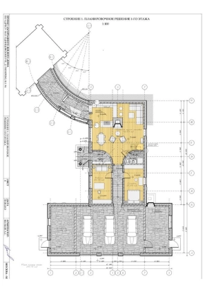 1 уровень: гараж на 3 машины, квадроциклы 95 м2, котельная, мастерская; отдельный гараж для снегохода.