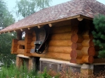 3 уровень: баня 40 м2, брёвна от 40 см в диаметре, запах дерева потрясающий; погреб, зимний сад-галерея, которые ведут из дома в баню.