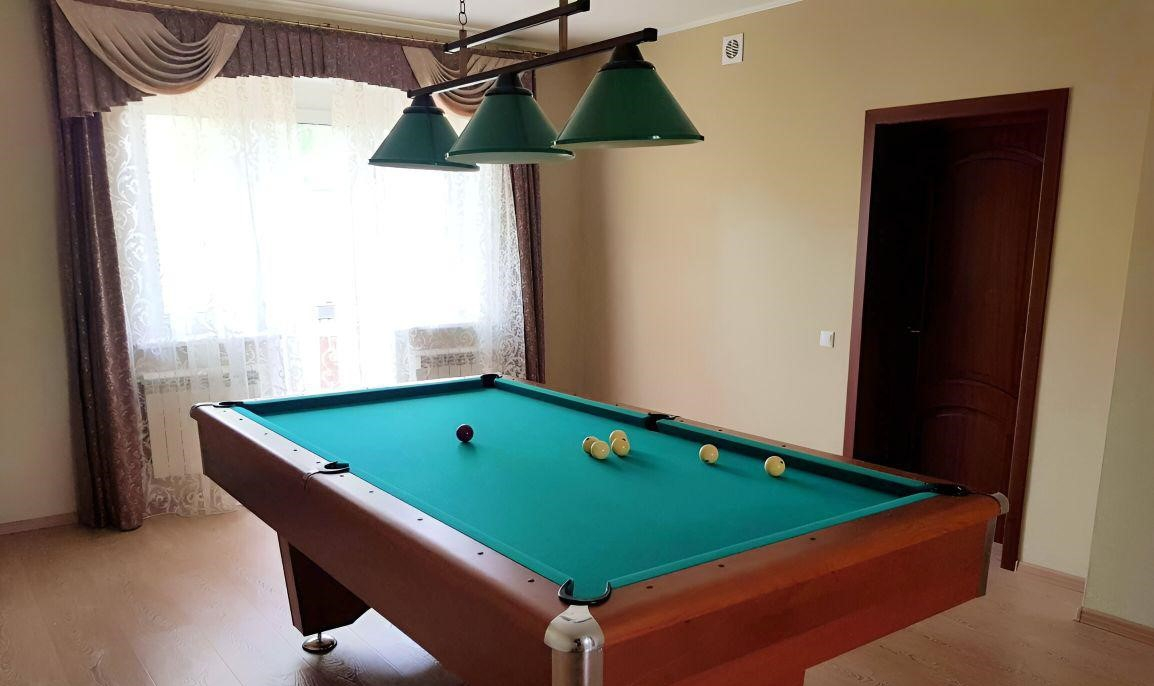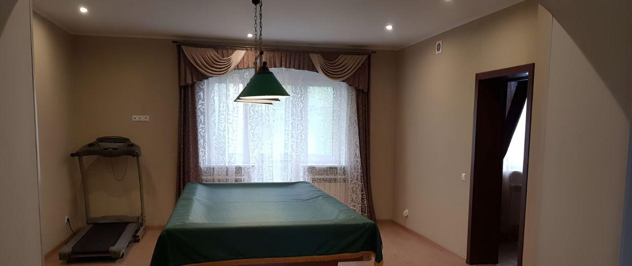 8 комнат: 3 на первом этаже и 5 на втором. Стол для биллиарда, настольного тенниса. Две кухни. Бассейн с противотоком/спа. Две ванные комнаты, 4 санузла. Гараж (2 машиноместа, 1 внутри дома и 1 в отдельно стоящем строении).