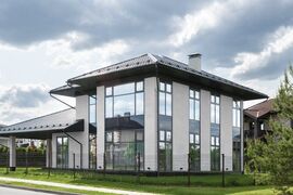 Коттедж 350 кв. м «под ключ» в элитном закрытом охраняемом коттеджном поселке Новорижский. Дом 2022 года постройки из двойного кирпича с монолитными перекрытиями на монолитном фундаменте. Фасад - известняк, ночная подсветка дома. Потолки 3,5 метра, панорамные окна. Дорогая качественная отделка в современном стиле. Дом без мебели, полностью готов к проживанию. 2 этажа.