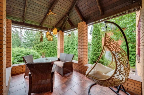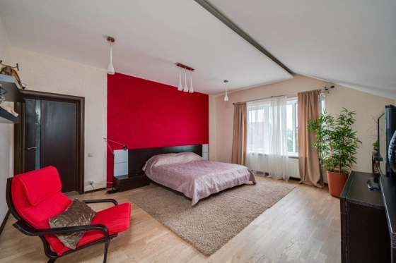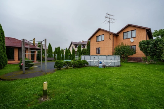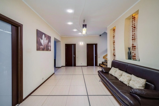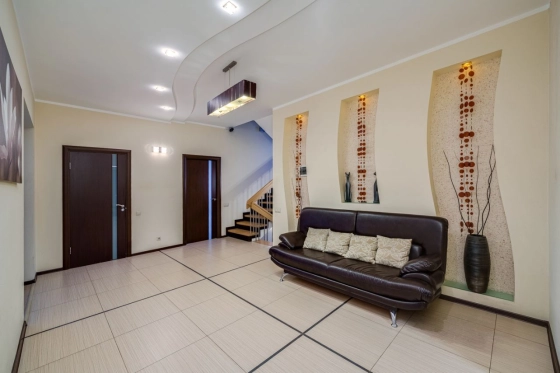 Коттедж 380 кв. м «под ключ» в д. Супонево, пригород Звенигорода. Дом 2006 года постройки из пенобетонного блока, облицован кирпичом, утеплен пеноплексом. Перекрытия железобетонные плиты, фундамент монолит. 3 этажа, 4 уровня. Меблирован, оборудован техникой, полностью готов к проживанию.