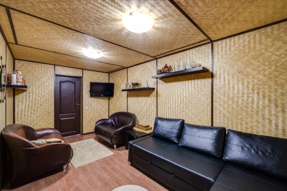 Цоколь - гардеробная 15 кв. м, сауна 24 кв. м, котельная 24 кв. м, холодная кладовая 8 кв. м, гараж на 2 мм 68 кв. м.