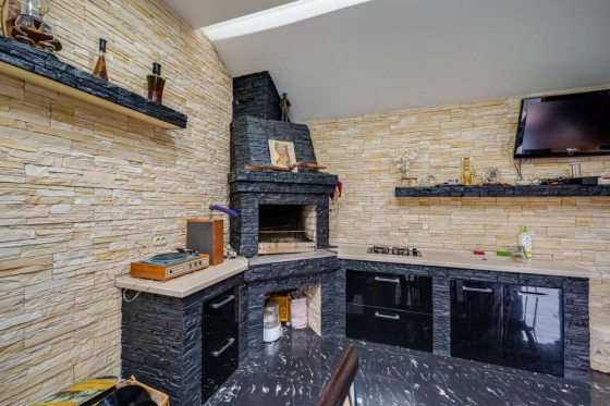 Участок 12.5 соток под ИЖС, полностью освоен, есть плодовые и декоративные деревья и кустарники, въездная группа брусчатка. На участке теплая беседка + зона барбекю.