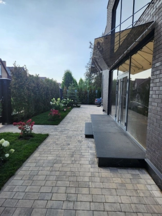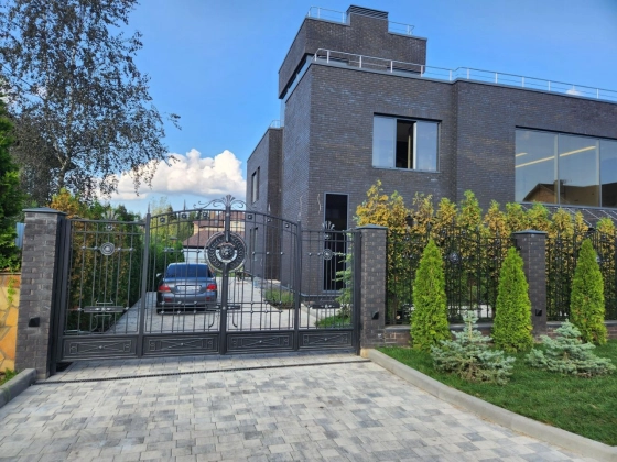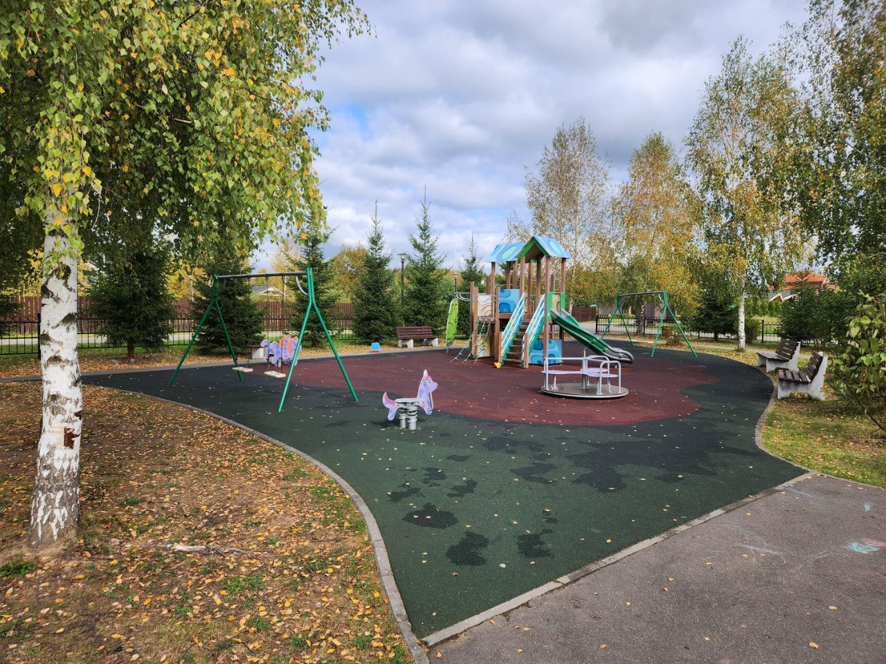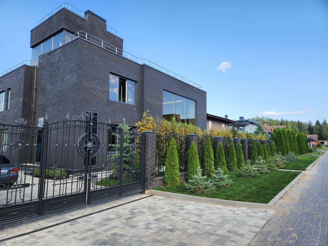 Участок 15 соток под ИЖС. На участке уложена брусчатка, сделан автоматический полив, постелен рулонный газон и высажены цветы, по периметру дома высажено около 200 туй. Забор выполнен из кованых элементов дизайнерской мастерской. На территории поселка есть все для отдыха, детская площадка, ресторан на берегу озера с зоной отдыха. Поселок огорожен, охраняется, въезд через КПП.